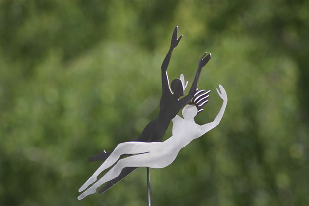Menschen als Einzelfiguren und Paare bevölkern nun vor dem frischen Grün der umliegenden Bäume den bisher kaum genutzten Freiraum. Die Fotos zeigen, dass es auch in einer Innenstadtgalerie eine spezielle "Sommerausstellung" geben kann.