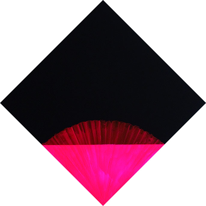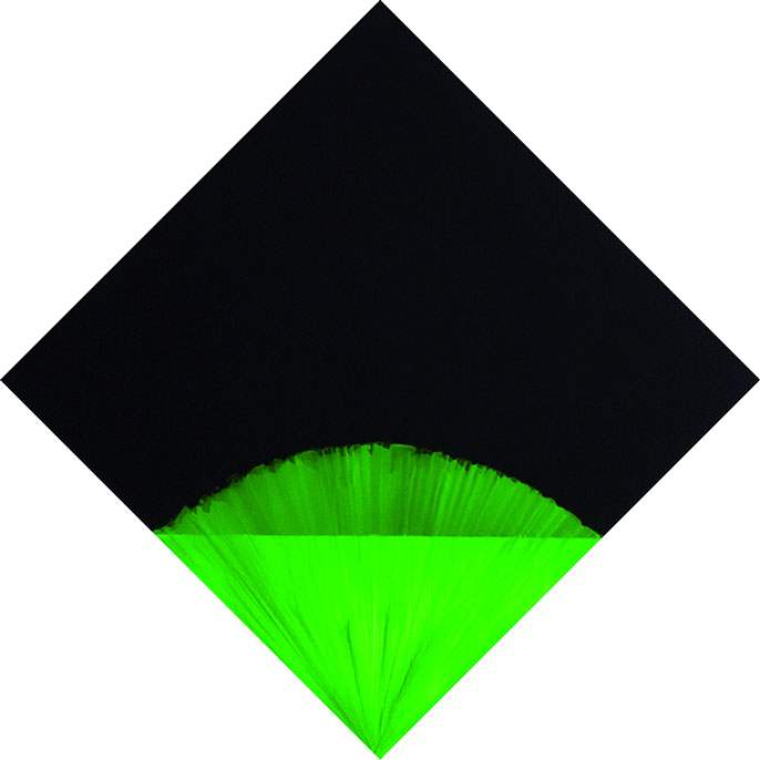 konkreter Farbästhetik, die sich dem Wechselspiel von definierter Fläche und homogener Struktur zuwendet und den meditativen Aspekt auch mit optischen Irritationen erreicht.