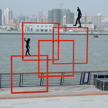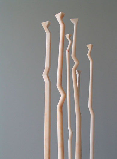 „Diese filigranen, bis zu drei Meter hohen Stelen sind auf das Notwendigste reduzierte Skulpturen, die ihren Raum beanspruchen und sich in ihm behaupten“, sagt Kulturdezernentin Ina Hartwig. „Auffallend sind nicht nur die unterschiedlichen Höhen der Stelen, sondern auch die Gestaltung mit verschiedenen Abschlüssen und Knicken, die einen sofort in ihren Bann ziehen.“
