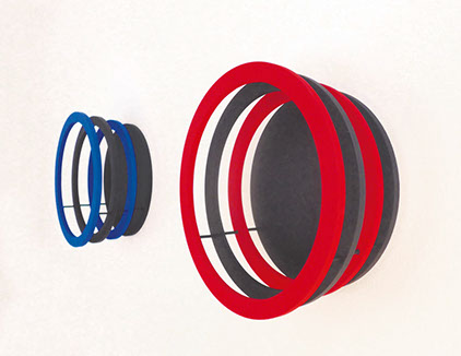 „Das Raster hat sich als Element zum Identifikations- und Ausdrucksmittel meiner Arbeit entwickelt. Als eine in beliebige Richtungen erweiterbare Struktur nutze ich es in einem weiten Spektrum für die Kunst. So erreiche ich mit ihm beispielsweise räumliche Wirkungen auf der Fläche durch die Variation des Abstandes der Rasterpunkte auf unterschiedlichen Farbgründen. Die Überlagerung einer monochromen Ebene mit einer homogenen Rasterstruktur, dessen Verschiebung und Drehung, führen dann zu weiteren Schritten aus der Zweidimensionalität. Die aus der Kreisfläche oder der Ellipse abgeleiteten Großformen erzielen ihre Wirkung zunächst durch ihre voluminöse Kraft. Das Raster als Perforation oder haptisch aufgetragen, betont und steigert hier die dritte Dimension.“