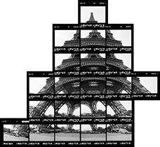 Zeitsplitter übertragen und zu Collagen zusammengefügt, Schriftzeichen weisen den Weg zu