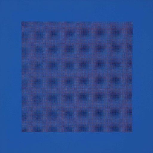 konkreter Farbästhetik, die sich dem Wechselspiel von definierter Fläche und homogener Struktur zuwendet und den meditativen Aspekt auch mit optischen Irritationen erreicht.